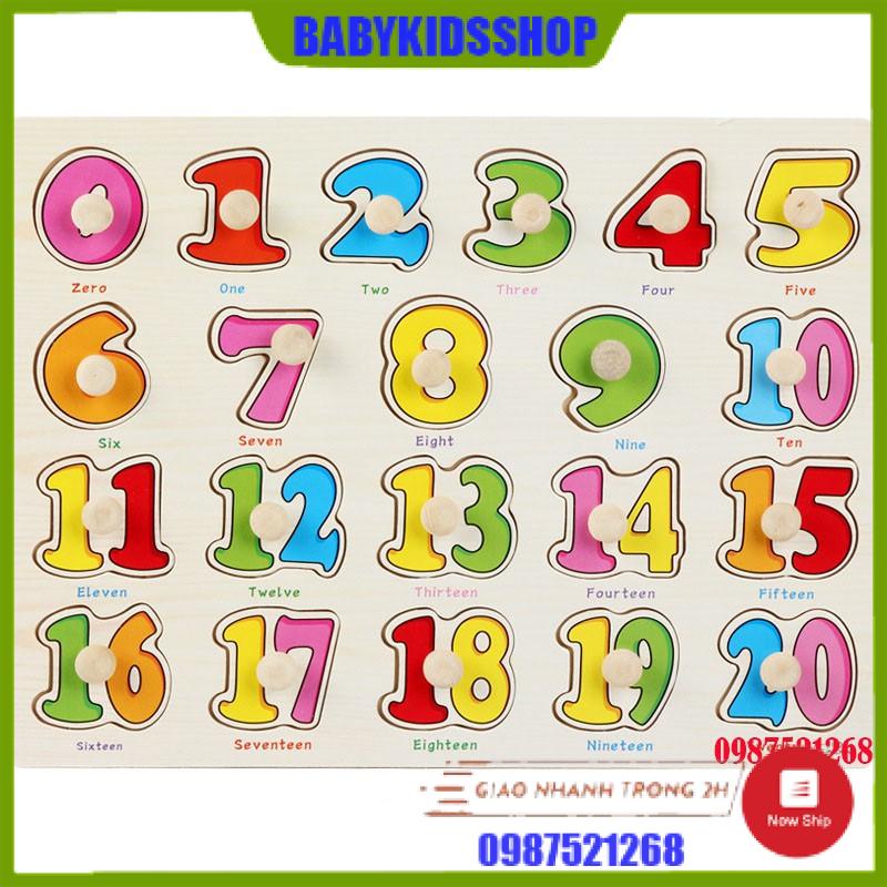Giới thiệu [HÀNG LOẠI 1] Bảng ghép hình số 0-20 bằng gỗ có núm cầm