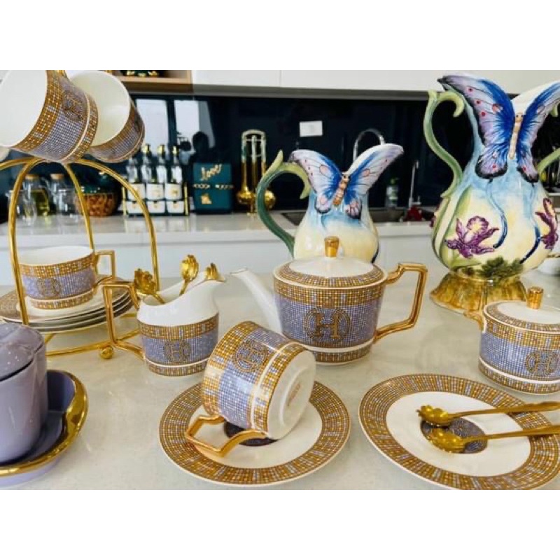 Giới thiệu (HÀNG LOẠI 1) Bộ Trà Cafe hoạ tiết Hermes Sứ Xương Cao Cấp