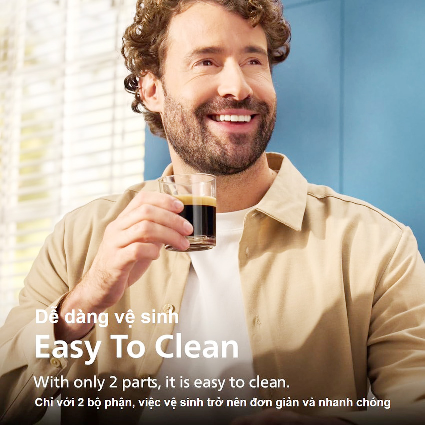 - Các bộ phận như khay nhỏ giọt, khay đựng bã cafe và các bộ phận liên quan đến sữa đều có thể an toàn trong máy rửa bát, giúp tiết kiệm thời gian và công sức. Thêm vào đó, bộ phận ủ/pha chế có thể tháo rời, mang lại sự thuận tiện trong việc làm sạch và duy trì máy luôn trong tình trạng hoạt động tốt, đảm bảo chất lượng cafe mỗi lần pha.