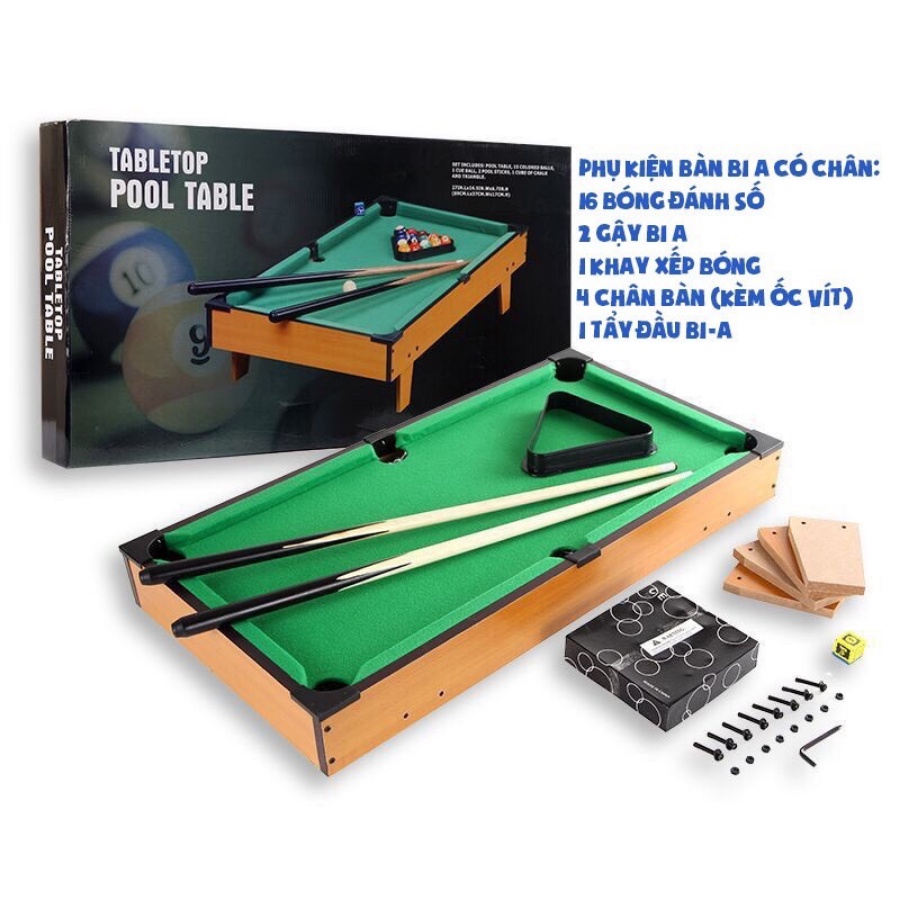 🌞 Chất liệu: Gỗ (An Toàn Tuyệt Đối Với Mọi Lứa Tuổi) 🌞 Kích thước: ĐỦ SIZE 🌿 Size nhỏ không chân: 52 x 31 x 10cm 🌿 Size nhỏ có chân: 52 x 31 x 23cm 🌿 Size to chân thấp: 69 x 37 x 17cm 🌿 Size to chân cao: 69 x 37 x 60cm 🌞 Mặt bàn Vải Nỉ 🌞 16 bi + 2 Gậy + 1 Tẩy + 1 Khay xếp bóng 🌞 Màu sắc : Xanh lá, Đen 🌞 Sử dụng cho 1-2 người chơi, phù hợp với chơi gia đình, trẻ em 3 tuổi trở lên