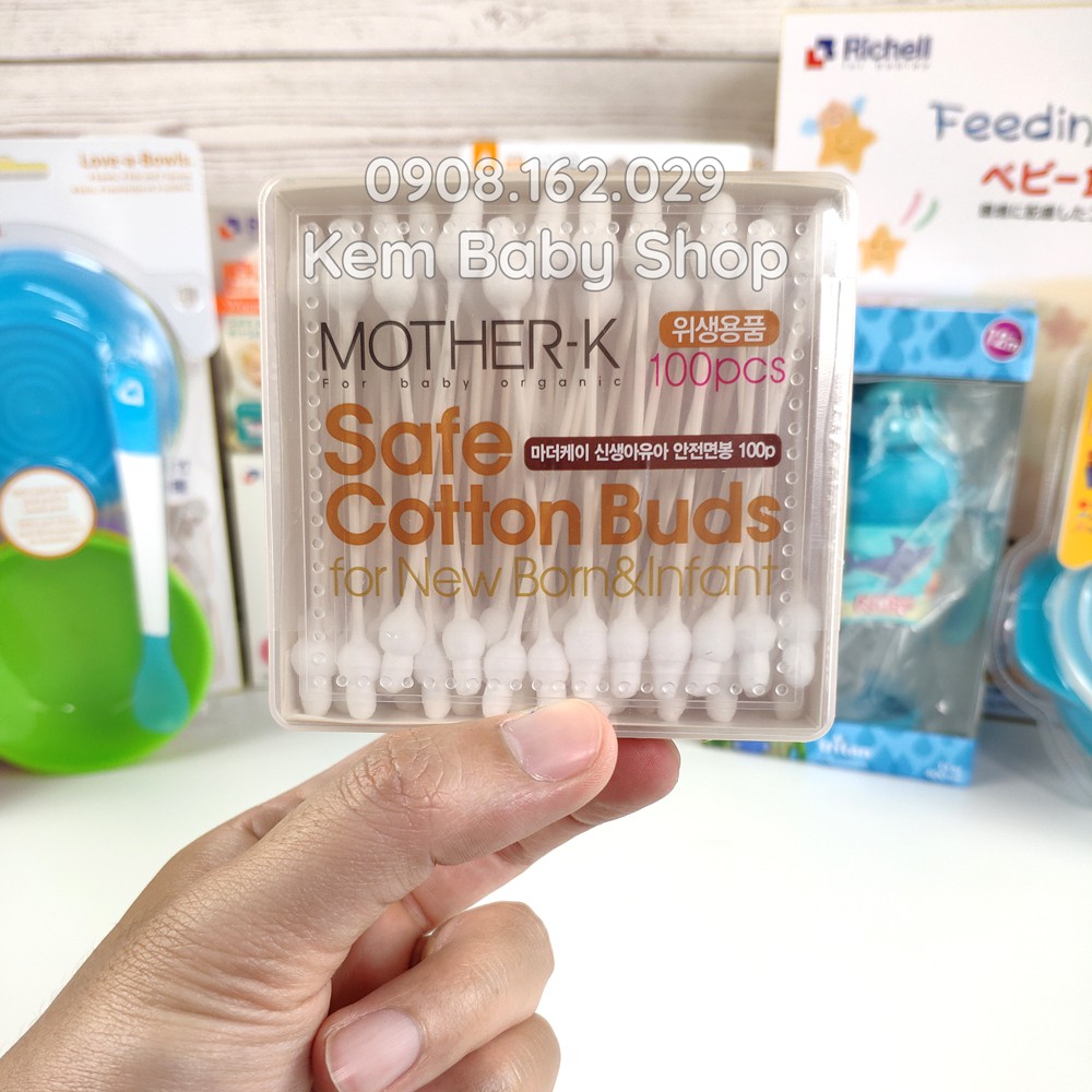Tăm bông sơ sinh Mother-K Hàn Quốc (100c) - Tăm bông cho bé Mother K cao cấp