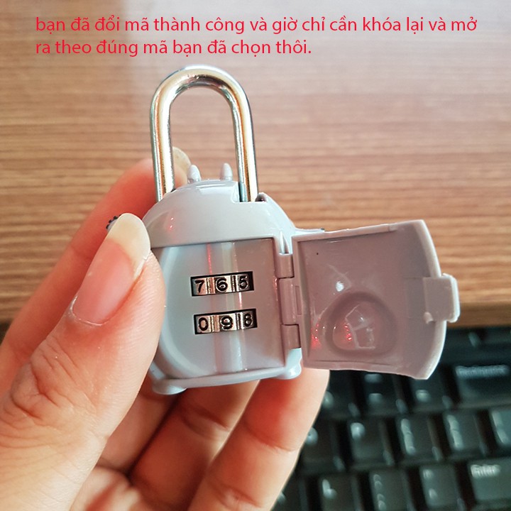 - Kích thước: 6.7cm x 5cm - Chất liệu: nhựa - Màu sắc: xám - HDSD: có thể đổi mã, mã mặc định 00, bạn muốn đổi mã số khác làm theo cách sau: B1: mở ổ khóa ra trước bằng mã 00 B2: khi ổ kháo đang mở, bạn chọn mã mà mình muốn đổi Chỉ 2 bước đơn giản là bạn đã có thể đổi mã thành công. -------------------------- Thông tin liên hệ *** Website: www.inu.vn *** Facebook: www.facebook.com/inu228331 *** Hỗ trợ tư vấn sản phẩm: (Mobi) 0938 228 331 - (Viettel) 0982 228 331