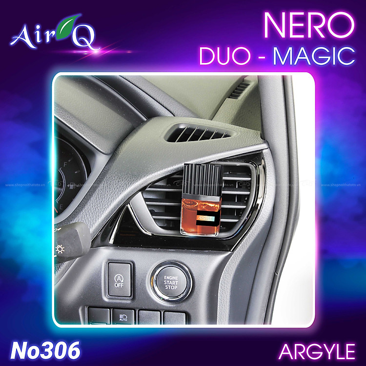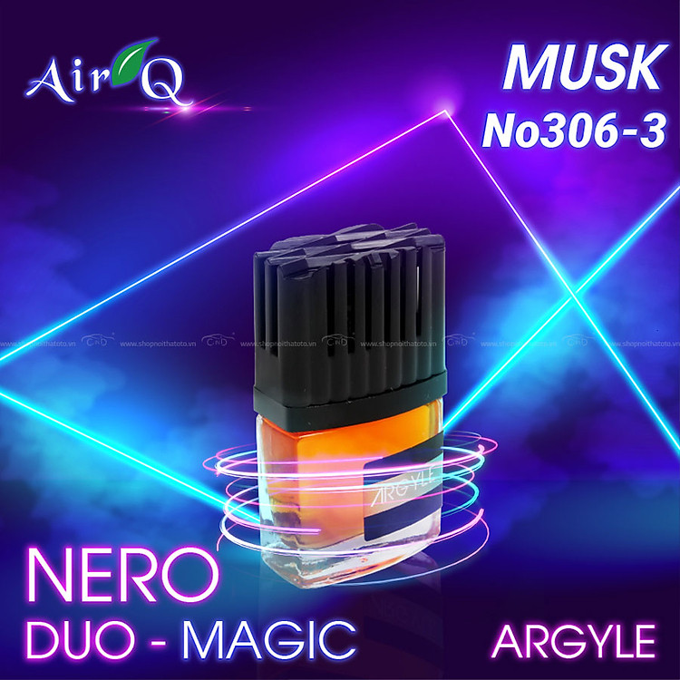 - Nước hoa ghim máy lạnh AIR-Q NERO DUO-MAGIC ARGYLE NO306-3 Musk 9ml được chế tạo với công thức đặc biệt của các chuyên gia hàng đầu tại Đài Loan, hệt như tên gọi - sản phẩm sẽ mang đến mùi hương thần kỳ quý phái, dịu nhẹ giúp bạn thư giãn thoải mái, tăng khả năng tập trung khi tham gia giao thông. Ngoài ra, thiết kế sản phẩm chuyển sắc tạo cảm giác sinh động trong không gian xe. Với thành phần hoàn toàn lành tính, sản phẩm đảm bảo không gây nên bất cứ tác dụng phụ cũng như ảnh hưởng gì đến sức khỏe của bạn khi sử dụng.