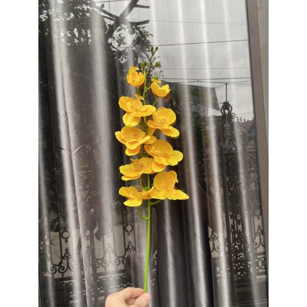 💢 LAN HỒ ĐIỆP 9B 💢 📌 Hoa được làm từ chất liệu vải lụa cao cấp , mềm mịn rất giống hoa thật. cành cao 80 cm 👉 1 cành có 9 bông. Bông to ~10cm. 👉 Cánh hoa được dập vân tạo sự thẩm mĩ cao. Hoa thêm phần sắc sảo. 👉Với bảng màu hoa cực chất. Cành hoa rất chắc chắn khi thân là lõi thép được bọc lớp nhựa xanh PVC như thân cây thật. Dễ uốn , dễ tạo kiểu hoa. 👉 Để cắm được 1 bình hoa đẹp cần 5-10 cành và thêm gốc lá lan ( bên Shop có bán gốc lá lan luôn nhé khách yêu). 👉 Ngoài ra hoa cũng có thể dùng để cắm lãng hoa. Phối cùng các hoa khác nhìn cũng lịch sự lắm ạ. 📌 Giá trên KHÔNG bao gồm lá lan ( gốc lan
