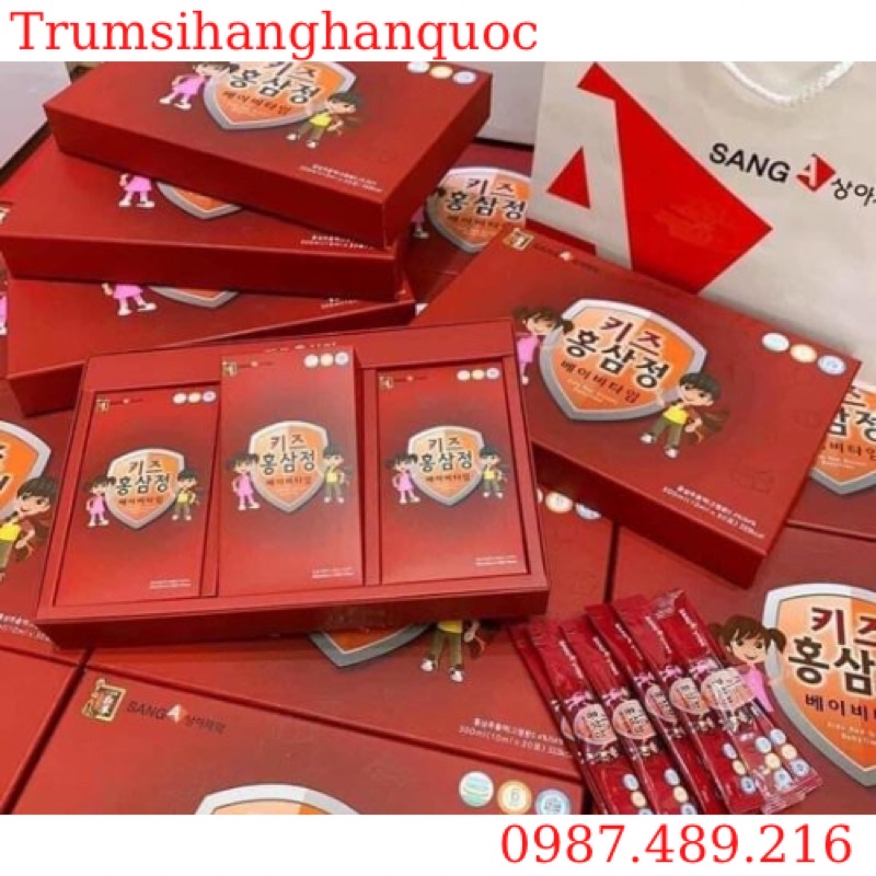 Hồng sâm Sang a hộp 30 gói - 10ml Date 2022 Nước hồng sâm trẻ em là sự kết hợp giữa tinh chất hồng sâm cô đặc với các thành phần dược thảo đông y bổ dưỡng khác như nhung, quế, vitamin để tăng cường hệ miễn dịch, sức đề kháng cho các bé.