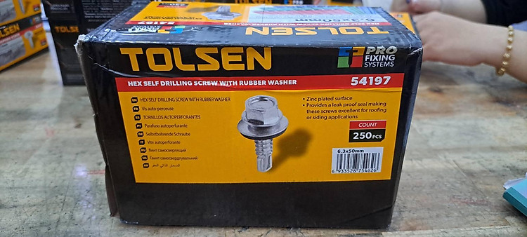 Giới thiệu HỘP 500 CÂY VÍT LỤC GIÁC TỰ KHOAN VỚI VÒNG ĐỆM CAO SU 6.3X32MM 4KG 54196 TOLSEN - HÀNG CHÍNH HÃNG