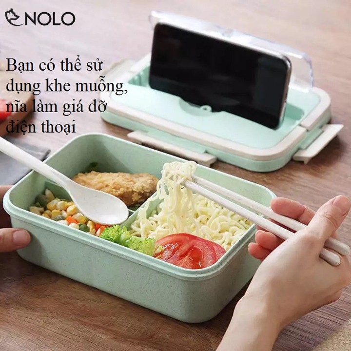 Nhà cửa & Đời sống > Dụng cụ nhà bếp > Hộp đựng thực phẩm || Hộp Cơm Giữ Nhiệt Bento Dung Tích 1000ml 3 Ngăn Kèm Đũa Muỗng Chất Liệu Nhựa PP Lúa Mạch Có Thể Cho Dùng Lò Sóng