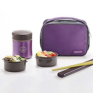 - Thương hiệu : Lock&lock Hàn Quốc - Xuất xứ sản phẩm : Hàn Quốc - Sản xuất tại Trung Quốc - Hộp giữ nhiệt : thân bằng hép không gỉ 304 , nắp nhựa PP và gioăng silicone - Đũa : Nhựa PP, hộp đựng đũa : Nhựa ABS - Túi chất liệu vải Nhiệt độ giới hạn : Nhựa PP ( -20 ~ 120oC ); nhựa ABS (-20 ~ 80oC ); silicone (-40 ~ 200oC ) Màu sắc : tím, xanh, nâu Trọng lượng bộ : 550gr Bộ sản phẩm gồm : - 1 x túi : 21.5 x 14 x 9cm - 1 x hộp Inox giữ nhiệt dung tích 450ml : Ø9.5 x 13cm - 2 x hộp nhựa đựng thức ăn 300ml : Ø11.5 x 5.5cm - 1 x đũa và hộp dài 19cm
