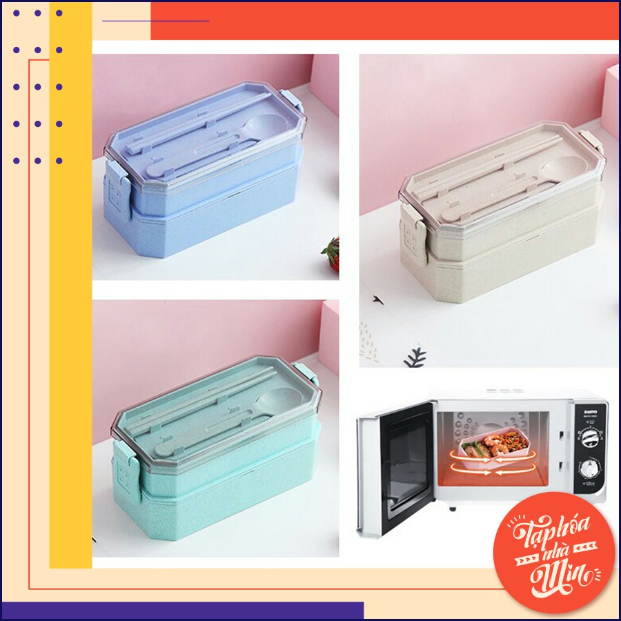 💟💟 Hộp Cơm Lúa Mạch 2 Tầng Cao Cấp - Kèm Muỗng Đũa - Dung tích 1000ml 💟💟