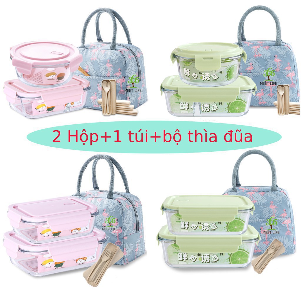 Giới thiệu Hộp cơm văn phòng 2 hộp thủy tinh có chia ngăn tặng kèm túi đựng giữ nhiệt