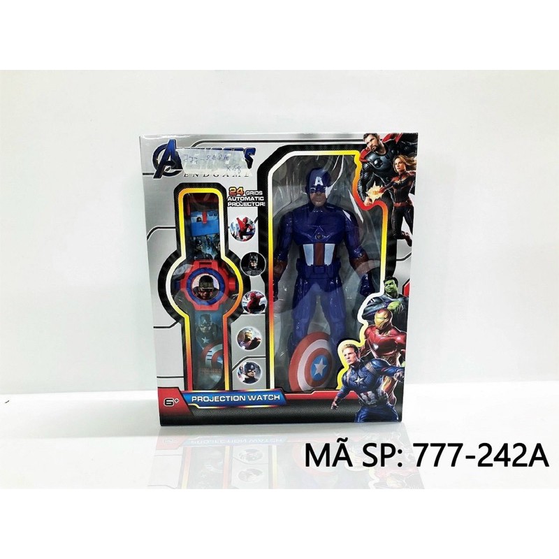 Hộp đồ chơi siêu anh hùng avenger và đong hồ đeo tay chiếu đèn Ironman/Captain America