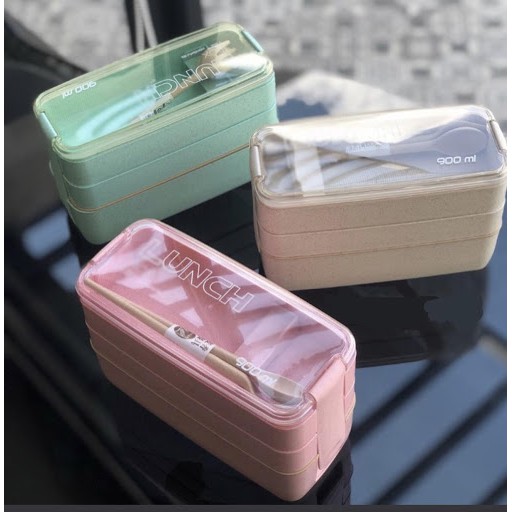 Thông tin chi tiết : Hộp đựng cơm lúa mạch 3 tầng kèm thìa và nĩa, sử dụng được với lò vi sóng