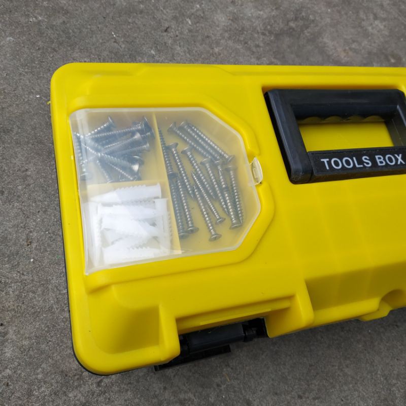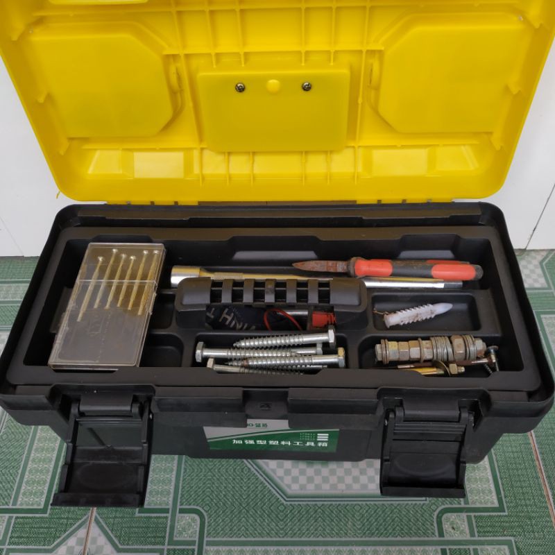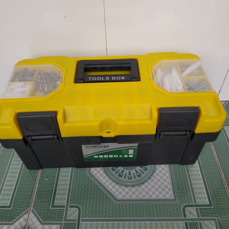 Giới thiệu sản phẩm. Thùng đựng đồ nghề giúp ta cất giữ bảo quản nhiều dụng cụ lớn nhỏ ngăn nắp tránh tình trạng thất lạc, tiết kiệm được rất nhiều thời gian khi tìm dụng cụ mỗi khi cần dùng đến. -Thùng được thiết kế nhiều ngăn lớn nhỏ khác nhau. Nhà sản xuất trang bị thêm khay nhựa phía trong thùng, trên đó được chia sẵn các ô nhỏ, cho người dùng đựng được nhiều vật nhỏ với kích thước đa dạng như: đinh, tắc ke, ốc vít, bulong… giúp bạn dễ dàng phân loại các dụng để tiện cho việc sử dụng. - Chỉ với 1 hộp đựng nhỏ nhắn không tốn nhiều diện tích giúp nhà bạn gọn gàng và sạch sẽ và gọn gàng hơn. Chất liệu : Nhựa ABS và PP cao cấp Thương hiệu : OEM Model : KTP-380, 430, 450 Kích thước : Hộp to 40x20x20cm, Hộp nhỏ 37x18x19cm,