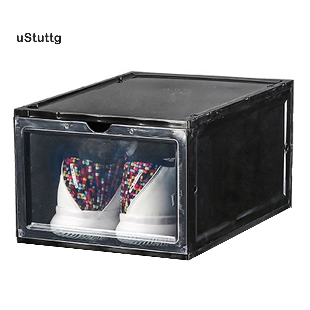 Item Name: Shoes Box Material: PP Features: Dustproof, Stackable, Shoe Organizer Size: 34cm x 25cm x 18.2cm/13.39" x 9.84" x 7.2" (Approx.)