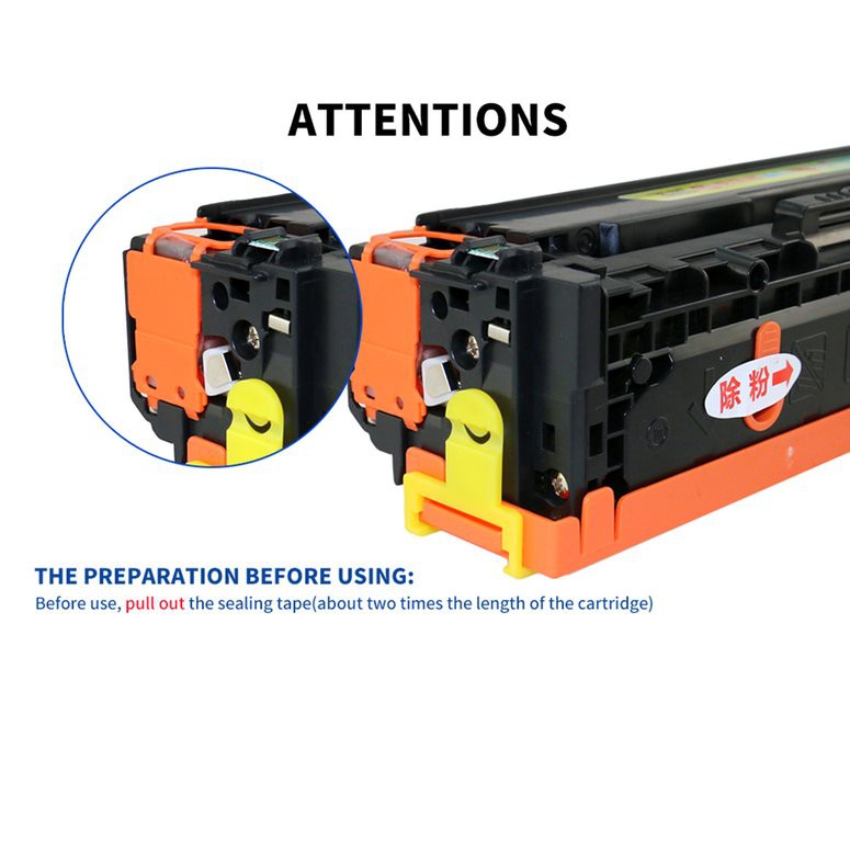Specifications: Material: plastic Capacity:45g Pages yield: 2400 pages(A4 format at 5% coverage) Model:CF212A Size: 350*110*140mm Toner color: yellow Body color: orange&black