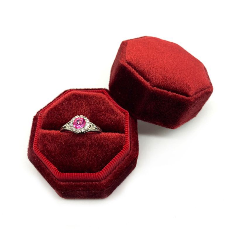 Octagon Velvet Ring Box Single Ring Display Holder with Detachable Lid Ring Box Holder for Wedding Ceremony
