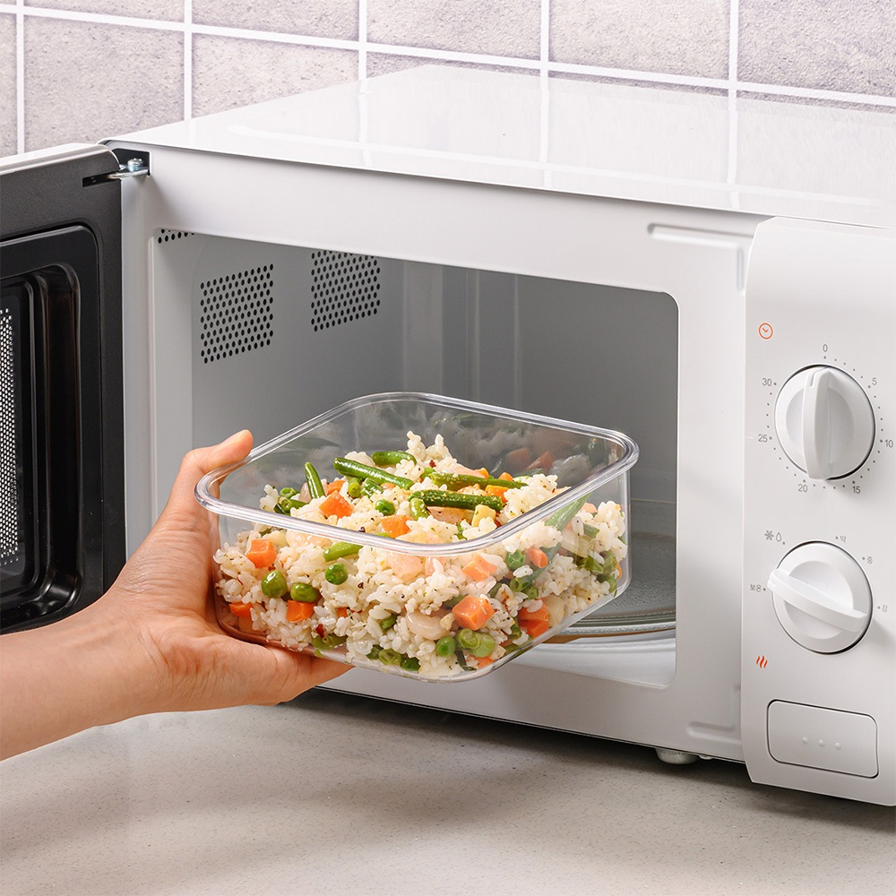 - Phần thân hộp được làm bằng nhựa Tritan, có thể sử dụng trong lò vi sóng ( dưới 3 phút ) và không đóng nắp.