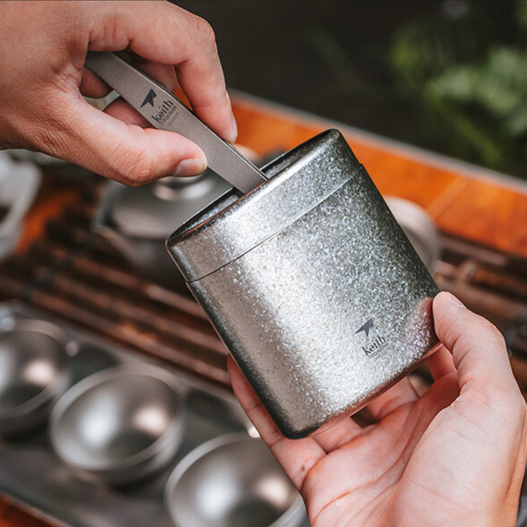 Được chế tác đặc biệt dành cho những người yêu trà. Chất liệu titan nguyên chất không dễ dàng hấp thụ hương vị trà, giúp trà được bảo quản lâu hơn. Thiết kế nhẹ và nhỏ gọn, dễ dàng mang theo, bạn có thể thưởng thức trà ngon mọi lúc mọi nơi. Thân bình hình bầu dục phẳng, cầm thoải mái, đáy bình chắc chắn, không dễ bị đổ. Thiết kế đường kính lớn thuận tiện cho việc rót trà và múc trà. Dù là trà lá hay cà phê hạt, bình đều có thể được bảo quản đúng cách, giúp bạn thưởng trà thêm phần tao nhã và tiện lợi.