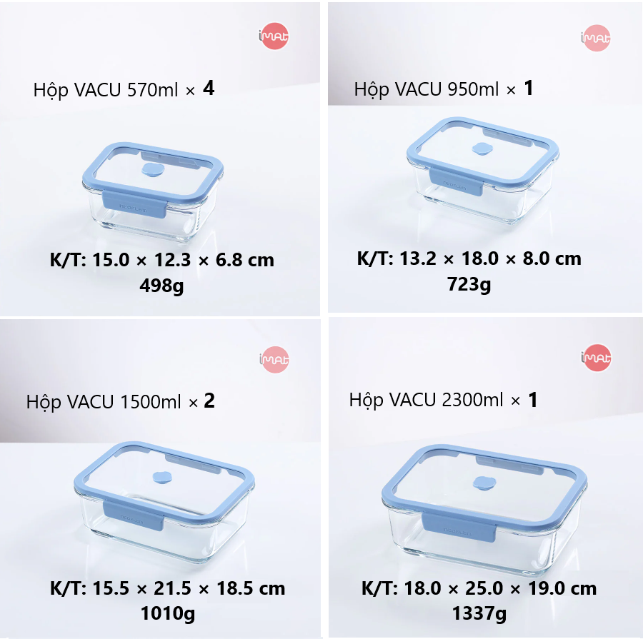 Hộp VACU 570ml × 4 I Hộp VACU 950ml × 1 I Hộp VACU 1500ml × 2 I Hộp VACU 2300ml × 1