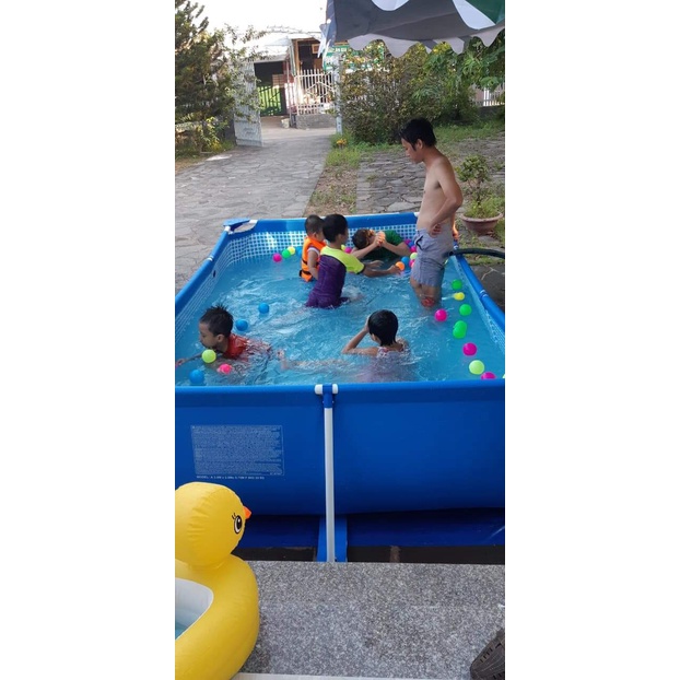 Bể bơi được thiết kế để có thể phù hợp với ngôi nhà có diện tích sân vườn hay sân sau nhỏ. Khung hồ được hỗ trợ mạnh mẽ bởi hệ thống khung đỡ bằng thép không gỉ, bề mặt khung được sơn tĩnh điện chống gỉ và tăng vẻ đẹp. Thành và đáy hồ được tạo bởi 3 lớp vật liệu riêng biệt để tăng sức chịu đựng Hệ thống hồ và khung được gia cố tất cả xung quanh thành một hệ thống để giữ chân khung luôn vững chắc ở mọi vị trí. Đường tiếp nước thuận tiện kết nối với vòi vườn để tiếp nước vào hồ bơi rất dễ dàng. Dễ dàng lắp ráp chỉ cần 2 người lắp mất 10- 20phút là đã cho được nước vào rồi Bể rộng dành cho cả gia đình hay nhiều bé cùng chơi.