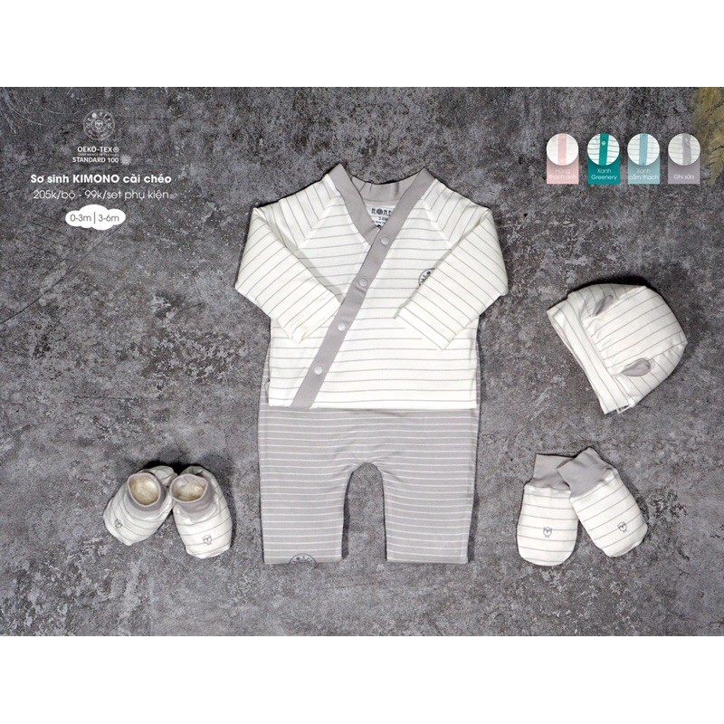 Giới thiệu HRNEE - Bộ sơ sinh Kimono kẻ cài lệch chất Modal (sợi sồi hữu cơ) mềm mịn