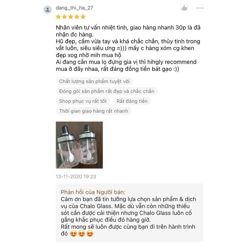 Hũ gia vị 250ml (kèm thìa múc) sở hữu chất liệu thủy tinh chịu nhiệt Borosilicat trong suốt và đẹp mắt.