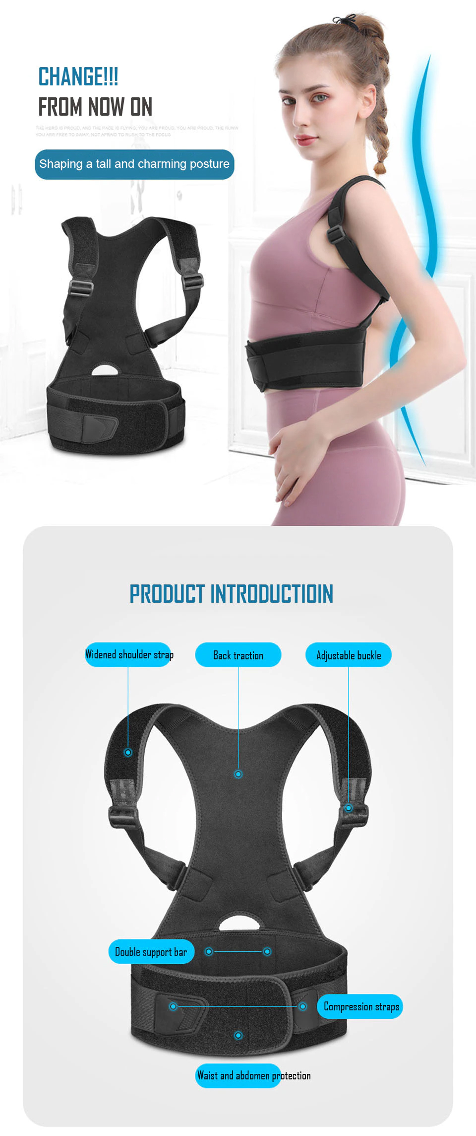 AOLIKES Adjustable Posture Corrector Corset Back Brace Back Belt Lumbar Support Straight Corrector for Men Women S-XXL