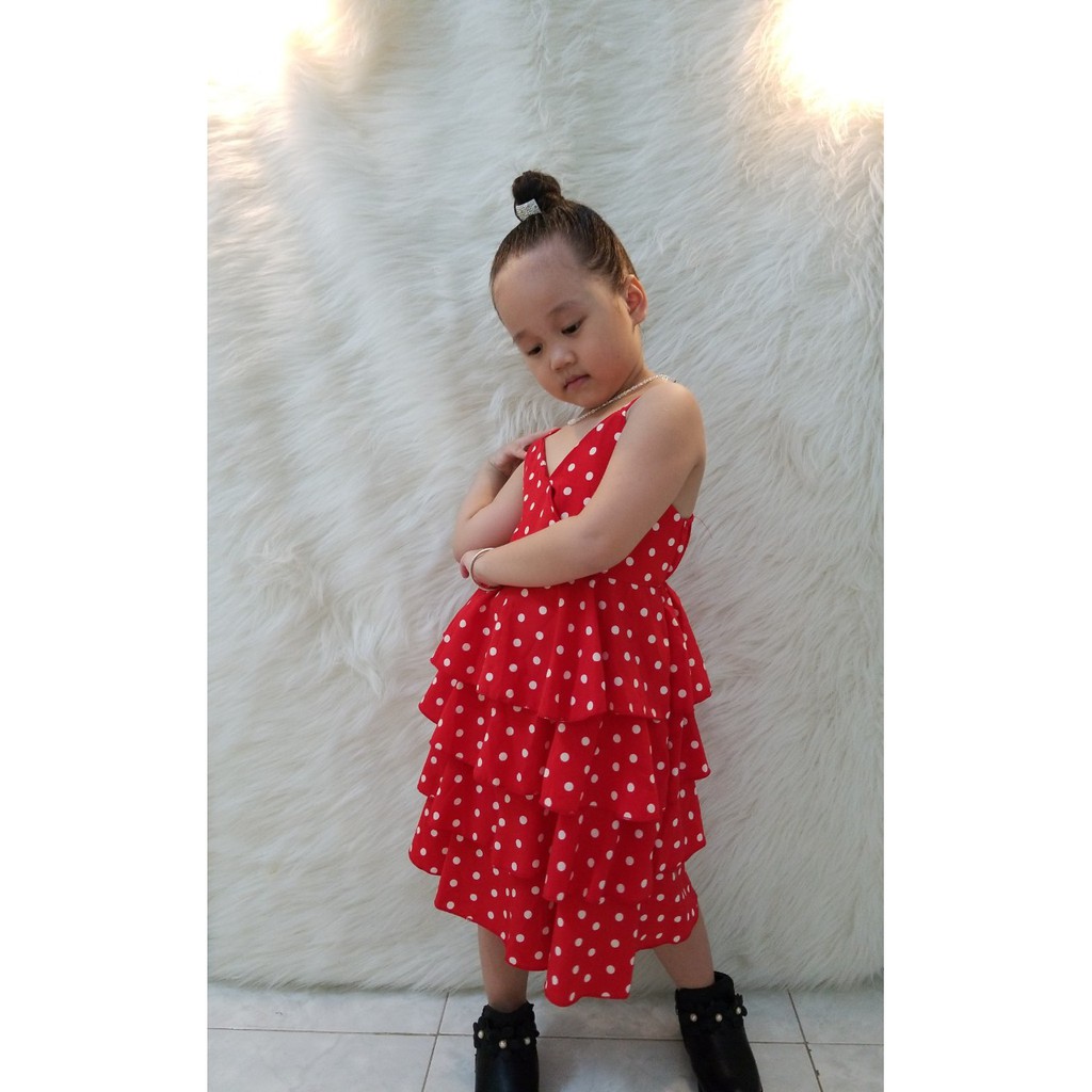 [Hình thật+ video] Váy bé gái đại chấm bi đỏ tầng siêu xinh 18-37kg J210 • 🍓HÀNG CÓ SẴN 💟 Mẫu bé GÁI siêu xinh với style tầng xòe cách điệu, chất liệu mềm thoải mái bé mặc đi chơi đi tiệc đều dễ thương ạ • 💟Chất liệu: cotton lụa mềm, thấm hút mồ hôi tốt, sản phẩm an toàn cho bé • Xuất xứ: Quảng Châu • Màu sắc: Như hình • Bảng thông số: Size Số kg Chiều dài váy 110 16-18kg 61cm 120 19-22kg 65cm 130 23-27kg 69cm 140 28-32kg 73cm 150 33-37kg 77cm