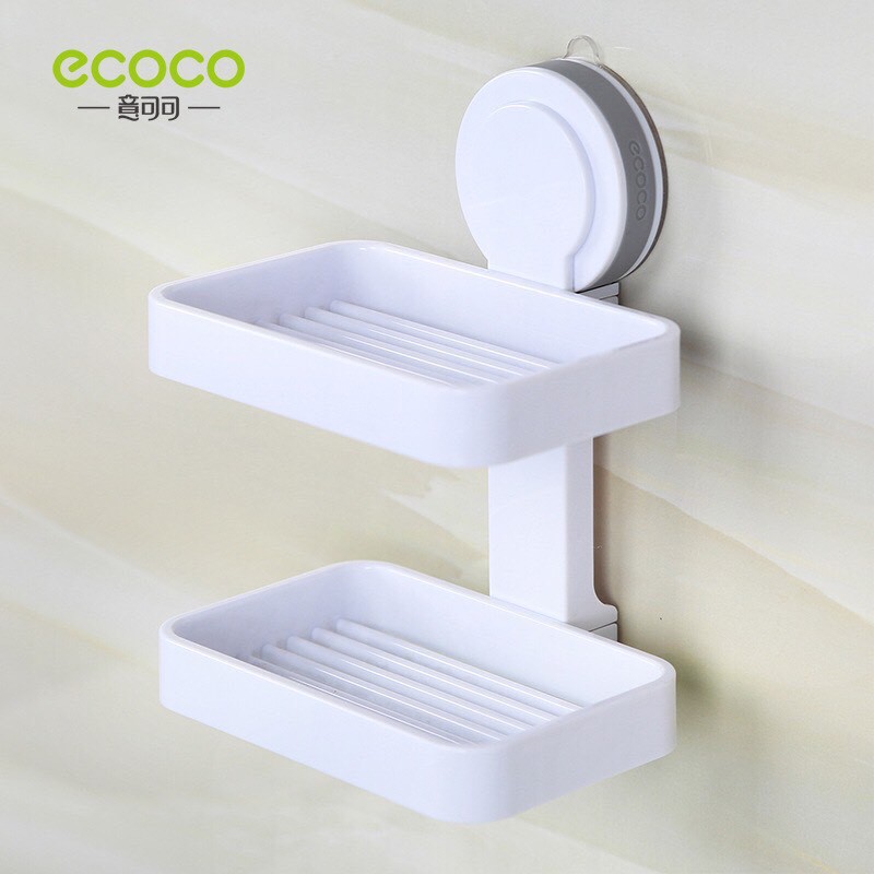 Kệ 2 tầng hút chân không siêu chắc Ecoco đựng xà bông chất liệu nhựa ABS cao cấp (Không cần khoan tường)