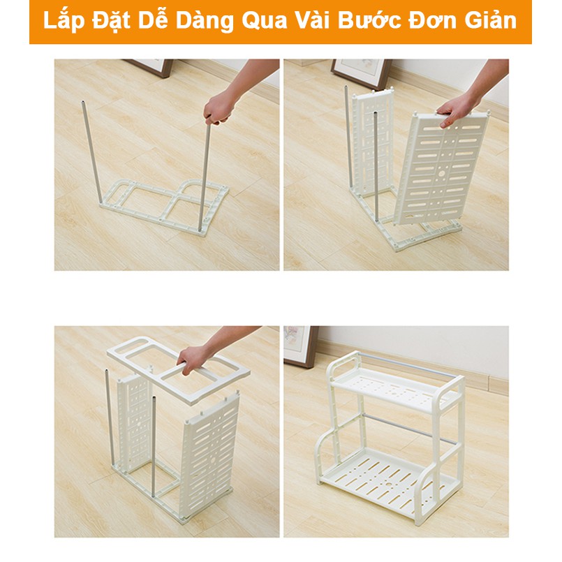 Kệ Đựng Gia Vị Nhà Bếp 2 Tầng Bằng Nhựa Cao Cấp. Chất liệu: Nhựa PP Phù hợp sử dụng trong nhà bếp để đựng gia vị, chai lọ… Lắp ráp dễ dàng qua vài bước đơn giản. Có khả năng chịu được trọng lượng lên đến 48 Kg. Hai mặt phẳng được thiết kế khá rộng rãi, có những ô nhỏ để thoát nước. Ngoài đựng gia vị chai lọ người dùng cũng có thể sử dụng kệ để đựng bát đĩa.