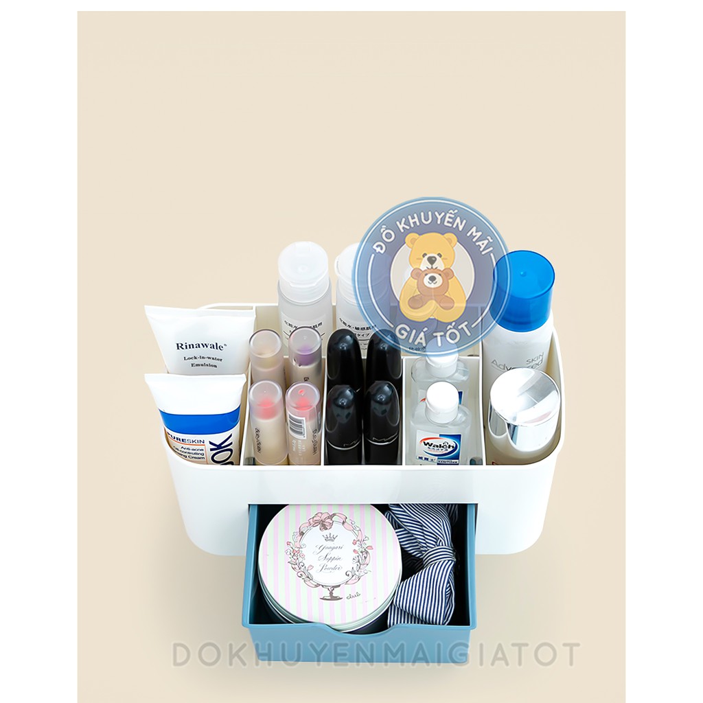 - Kệ để đồ trang điểm được thiết kế nhiều ngăn tiện dụng giúp bạn cất gọn dàng mỹ phẩm, dụng cụ văn phòng hay đồ dùng học tập. - Sản phẩm được làm bằng nhựa cao cấp bền đẹp - Kệ đựng có màu sắc bắt mắt, kiểu dáng thân thiện, góp phần làm sáng không gian nhà bạn. - Kệ để đồ mỹ phẩm đa năng được làm bằng chất liệu nhựa an toàn, được thiết kế hợp lý với 3 tầng, 2 ngăn . Hộp kích thước lớn, có thêm ngăn kéo, để được nhiều đồ tiện dụng. - Sản phẩm rất tiện lợi để bạn cất giữ và bảo quản đồ trang sức, mỹ phẩm. - Màu sắc trang nhã, nữa tính, phù hợp với mọi lứa tuổi. - Giúp tiết kiệm rất nhiều thời gian, trang điểm nhanh và đẹp hơn. * SHOP GIAO MÀU NGẪU NHIÊN Ạ!