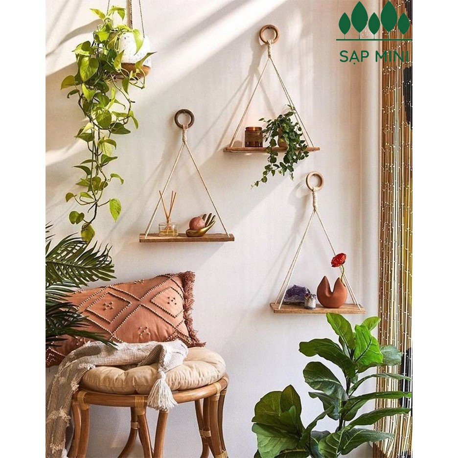 -------- Kệ gỗ thông nhập khẩu treo dây thừng Decor & Macrame nhiều size - Loại 1 gỗ đẹp ----------