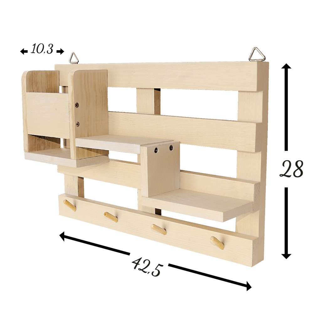 Giới thiệu Kệ gỗ treo tường đa năng có móc khóa - Full bộ lắp ráp kèm tua vít