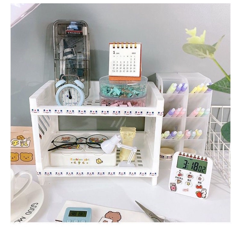 Giới thiệu Kệ nhựa mini , giá để đồ 2 tầng làm decor , đựng đồ đa năng xinh xắn