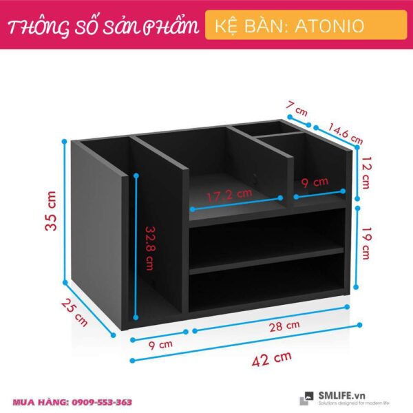 Mang đậm phong cách nội thất đơn giản. Kệ để bàn gỗ hiện đại SMLIFE Atonio là một sự bổ sung hoàn hảo cho phòng làm việc, phòng đọc sách của bạn. Kệ để bàn gỗ hiện đại Atonio được thiết kế với nhiều tầng kệ mang đến nhiều không gian giúp bạn tổ chức tài liệu và các vật dụng văn phòng thoải mái. Ngoài ra tủ hồ sơ văn phòng còn có thể sử dụng để trưng bày, trang trí cho không gian phòng khách. Sử dụng vật liệu ván ép công nghiệp MDF chống ẩm phủ Melamine cao cấp giúp tủ văn phòng gỗ SMLIFE có độ bền cao, chống trầy và chống ẩm rất tốt. Bạn có thể tự lắp đặt sản phẩm dễ dàng với các phụ kiện và hướng dẫn đi kèm.