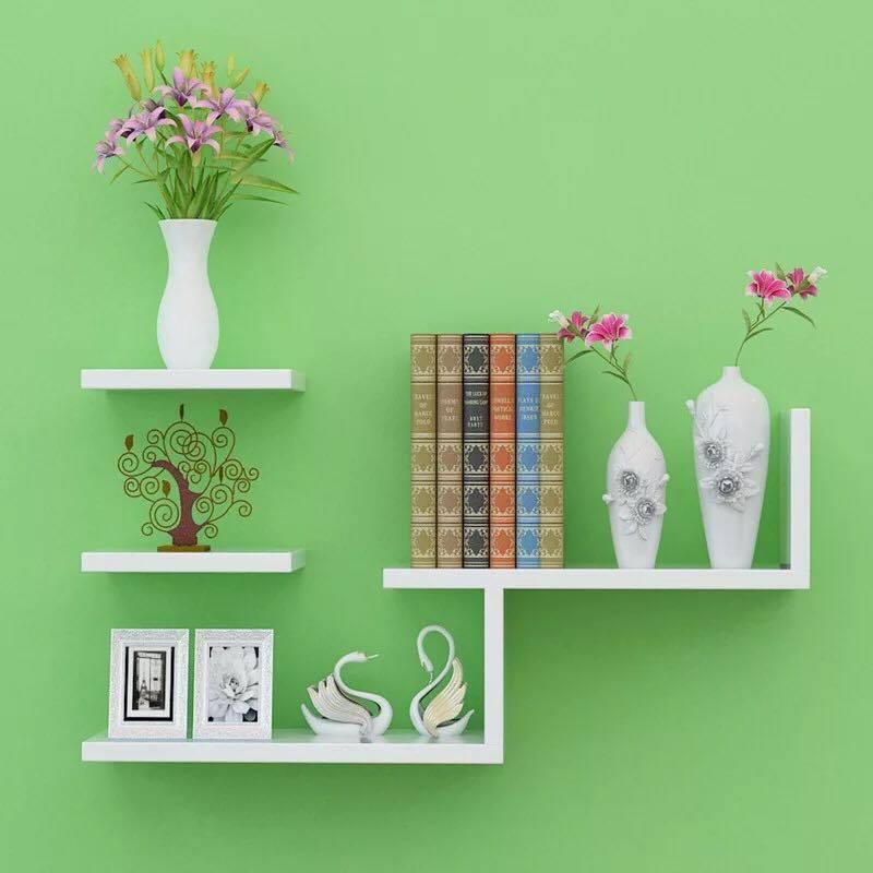 Giới thiệu Kệ trang trí treo tường 2 thanh chữ L (60x13cm); 2 thanh ngang (40x 13cm)