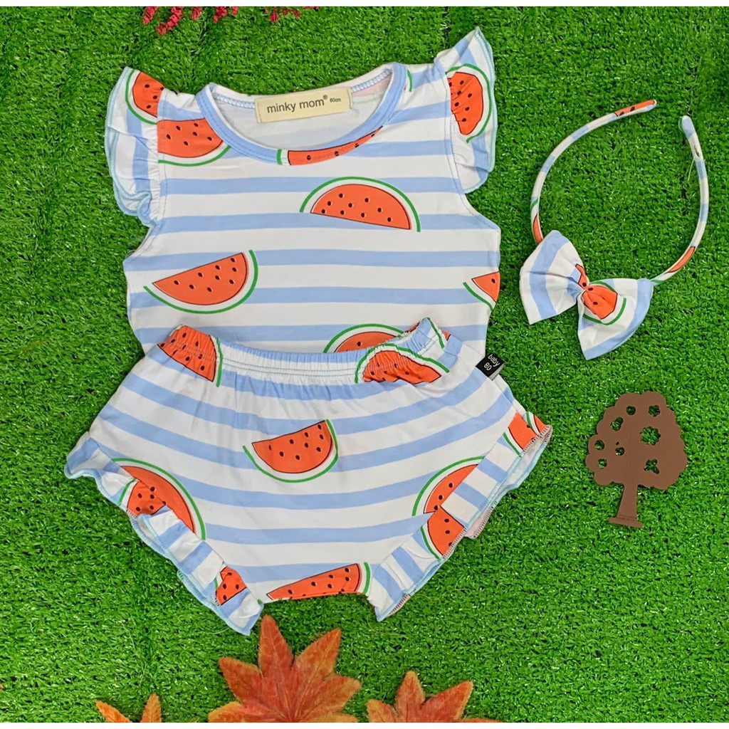 Giới thiệu [Kèm cài tóc] Bộ đồ thun lạnh MinkyMom áo tay cánh tiên quần chip in hình dưa hấu siêu xinh cho Bé Gái 4-15kg (Ảnh thật)