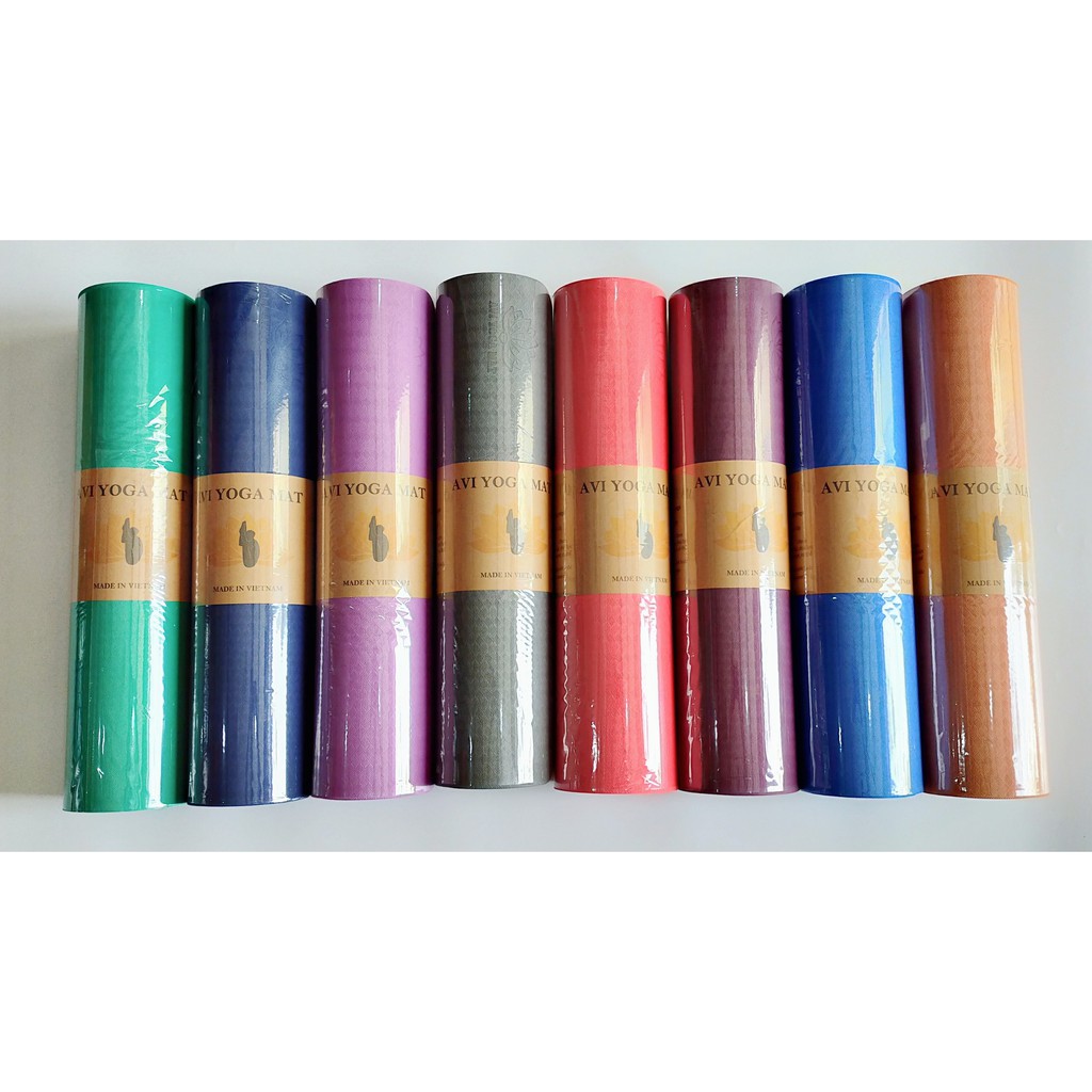 Thảm yoga AVI Việt Nam TPE cao cấp dày 6mm ( 1 lớp và 2 lớp ) MÔ TẢ SẢN PHẨM: Thảm tập yoga AVI Việt Nam có định tuyến khắc ( không sợ bị phai như thảm in ) Thảm thiết kế 2 mặt hoa văn chống trượt tuyệt đối khi trải sàn - mặt trên chống trơn cho các động tác vững chãi hơn khi tập các tư thế. - Chất liệu: Thermo Plastic Elastomer (TPE) giúp thảm mềm mại và luôn giữ được độ đàn hồi tốt theo thời gian - Kích thước: dài 180cm x rộng 61cm . Dày 6mm ;( 1 lớp và 2 lớp ) - Màu sắc đa dạng : xanh lá, xanh rêu, đỏ cam, tím nhạt, tím than, xanh dương, xanh dương đậm, cam đất, xám - Xuất xứ : Việt Nam - Bảo quản và sử dụng: Thảm yoga chất liệu TPE cần được cuộn lại và để ở nơi khô ráo khi không sử dụng. Thảm có thể bị hư hỏng khi để trực tiếp dưới ánh sáng mặt trời hoặc để ở những nơi có nhiệt độ cao trong thời gian dài. - Giặt: Nhẹ nhàng giặt thảm với nước xà bông loãng và miếng vải mềm. Vệ sinh tuần một lần hoặc khi cần thiết. Không giặt máy hoặc sử dụng máy sấy. Để thảm khô tự nhiên .