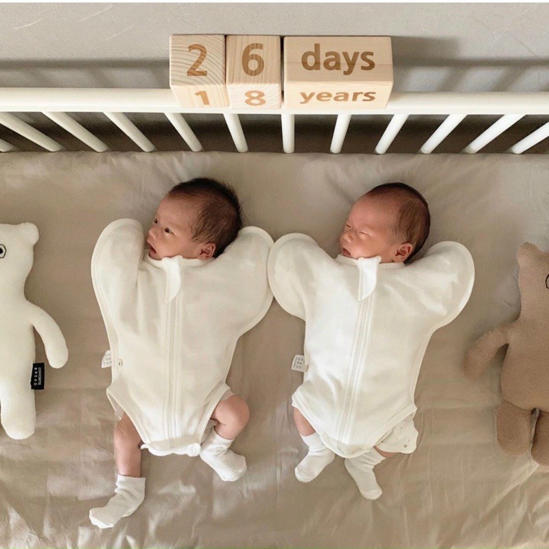Các mẹ lưu ý: * Quấn mặc chật 1 chút thì sẽ giúp bé dễ ngủ ngon hơn vì tạo cảm giác được ôm chặt như môi trường trong bụng mẹ.
