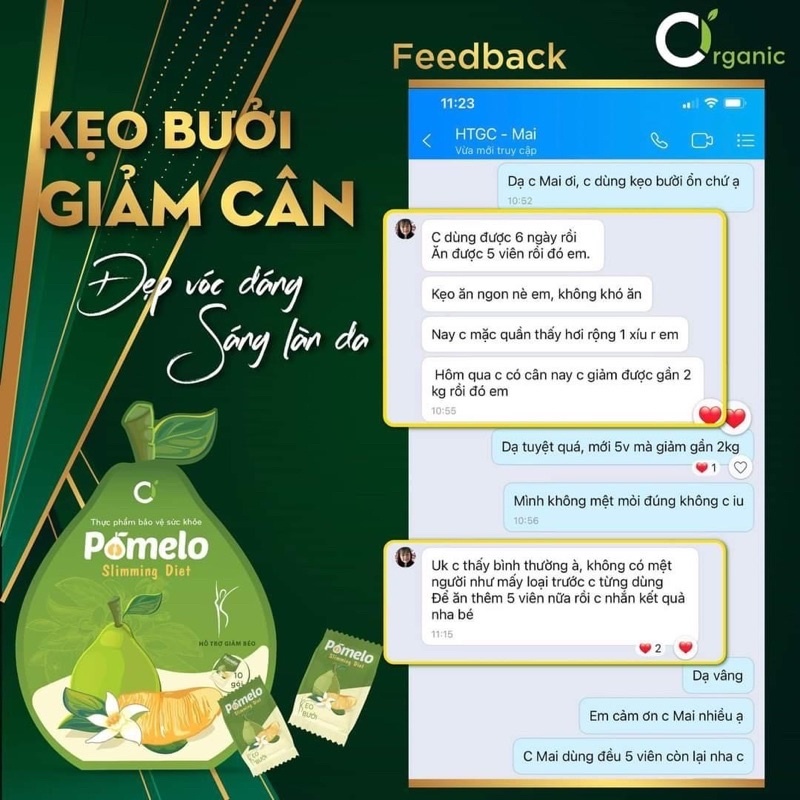 Tất cả những lý do trên đã đủ thuyết phục chị em nên thử ngay Kẹo Bưởi giảm cân chưa nhỉ. Chỉ 339k mà bán đi được 3-4kg mỡ trên cơ thể, giúp bạn tự tin hơn thì sao mà phải tiếc đúng không😊