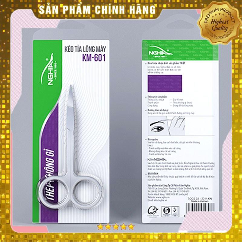 Ra đời từ những năm 1980, Kềm Nghĩa từ lâu đã trở thành thương hiệu mà người tiêu dùng tin tưởng sử dụng. Các sản phẩm của Kềm Nghĩa tương đối thông dụng, được chế tác từ các nguyên liệu cao cấp, khác hẳn các sản phẩm khác trên thị trường, sản phẩm KM.601 là dòng kéo cá nhân với thiết kế nhỏ- gọn- nhẹ, mũi kéo mảnh dễ dàng cắt tỉa và định hình đường lông mày. Sản phẩm KM.601 được tạo nên từ chất liệu thép không gỉ. Với công nghệ xi mạ an toàn không hại da tay, luôn là sản phẩm khách hàng tin dùng. Bao bì hộp nhựa giúp bảo quản tốt sản phẩm và phù hợp làm quà tặng, tiện lợi khi mang theo bên người. Lưu ý sử dụng: Công dụng sản phẩm: Kéo dùng để cắt tỉa và định hình đường lông mày. Không dùng để cắt các vật cứng.