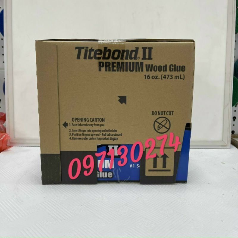 đóng gói: 1 chai 473mL Keo Titebond ll, Keo dán ghép gỗ dùng trong nhà và ngoài trời. Hướng dẫn sử dụng: Các bề mặt cần dán ghép phải sạch, khô và bằng phẳng. Những mối nối phải thật kít với nhau. Quét mạnh keo lên bề mặt cần dán ghép và kẹp giữ lại tối thiểu trong 30 phút. Không tác động lực lên mối ghép 24h. Loại bỏ những phần keo thừa khi keo chưa khô bằng vải thấm nước. Vặn/ Đập nắp bình keo ngay sau khi sử dụng. Những chi tiết và lưu ý khác in trên bao bì sản phẩm