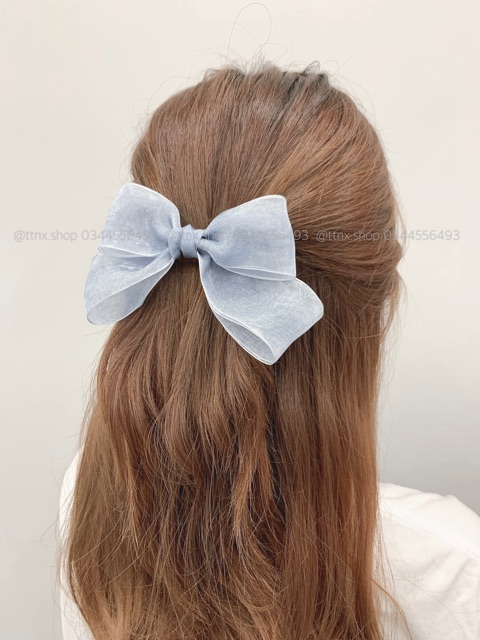 Kẹp nơ voan sheer shop có đủ 3 màu xinh nhất: trắng, nude, xám tây nha hihe