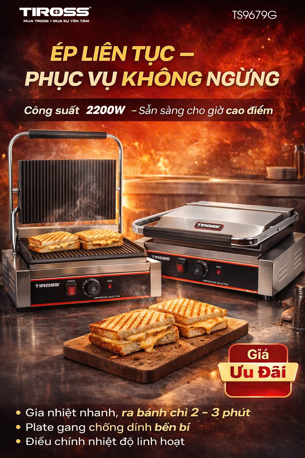 • Mặt nướng được tạo rãnh 2 mặt