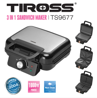 • 3 bộ khay thay thế: khay nướng bánh mì Sandwich, khay làm bánh Waffle, và khay nướng Grill (22.4 x 12.5 cm).