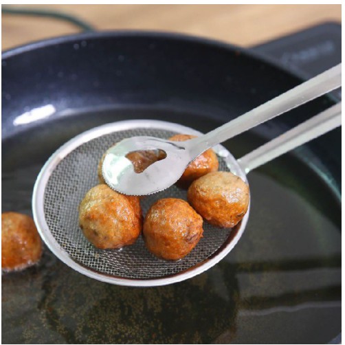 - Thiết kế đặc biệt, tiện lợi với 1 bên là đầu kẹp, 1 bên là mặt lưới, giúp bạn có thể gắp trực tiếp thức ăn đang chiên, luộc, hầm… thực phẩm sẽ được ráo nước cũng như hạn chế tối đa việc đọng lại dầu mỡ