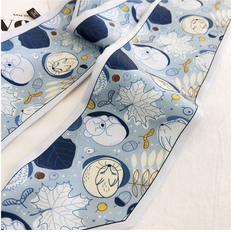 New simple fashion small scarf Tie your head as a headband Tied to bags for decoration ornament Or the most formal one around the neck as a scarf They are very elegant A constant layer of wear-and-wear feels new There's a more advanced belt~it's a belt or a wrist or even a hat Satin printed ribbon, very wild multi-purpose, Can make hair band, baby accessories, scarf, tooling scarves, hat ribbon Wear on the handle of the bag can wrap ribbon decoration, give the bag a new look.