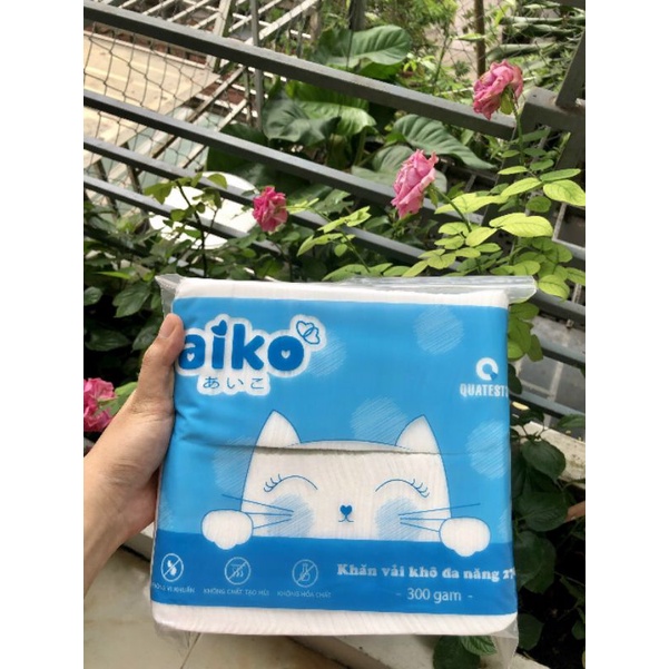 KhĂn Khô Aiko AIKO - Khăn vải khô đa năng - Gói 270 tờ/ 300g + Được làm từ sợi bông vải siêu sạch, rất dai, mềm, mịn và có độ đàn hồi cao. + Dạng khô, thích hợp cho làn da nhạy cảm nhất. An toàn cho bé, tiết kiệm cho mẹ. Công dụng: + Dùng cho bé: Vệ sinh da cho bé khi thay tã, bỉm... + Dùng cho mẹ: Tẩy trang sau trang điểm... + Dùng trong gia đình: Dùng làm khăn ăn trong các bữa ăn gia đình hay các bữa tiệc, hoặc dùng khi đi dã ngoại...( nhúng trước một số khăn và cho vào hộp nhựa đậy kín) Hướng dẫn sử dụng khăn vải khô đa năng đúng cách Các mẹ lấy số lượng khăn khô đa năng đủ dùng trong một ngày rồi nhúng qua nươc sôi để nguội hoặc nước trà xanh đựng trong một hộp nhỏ để cạnh giường để sử dụng cho bé khi cần, rất tiện lợi như khăn ướt mà vẫn đảm bảo an toàn cho bé. Nếu các mẹ lần đầu tiền dùng khăn vải đa năng để vệ sinh cho bé thì nên làm theo hướng dẫn dưới đây: Kết hợp với nước sôi để nguội để vệ sinh cho bé Nếu trong tiết trời mùa đông các mẹ nên dùng khăn vải đa năng với nước ấm để tránh lạnh cho bé #khankhodanang #khankhoaiko