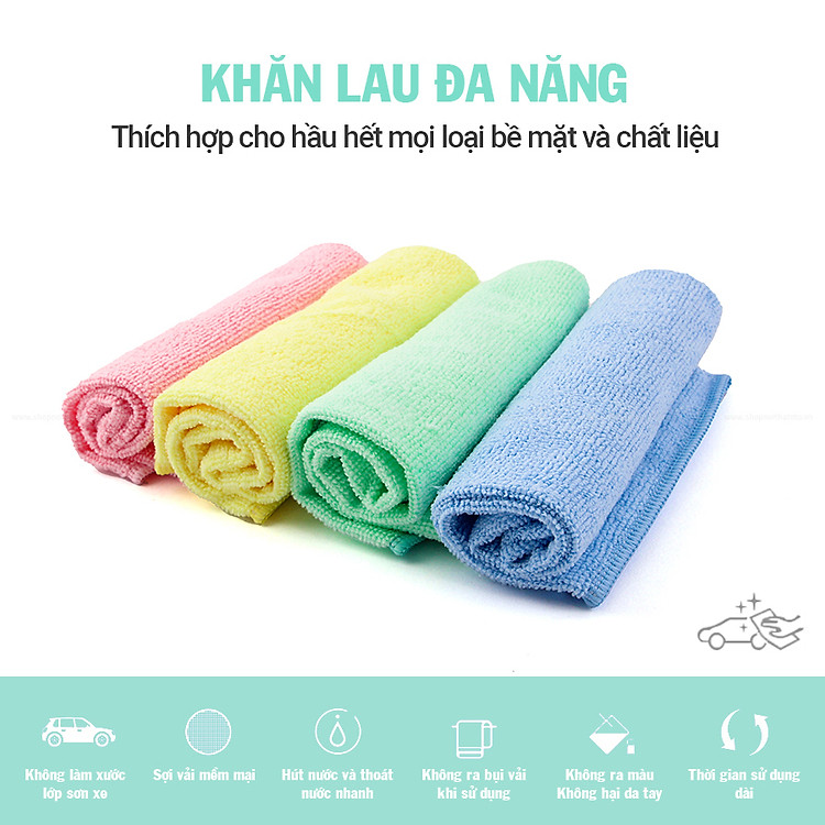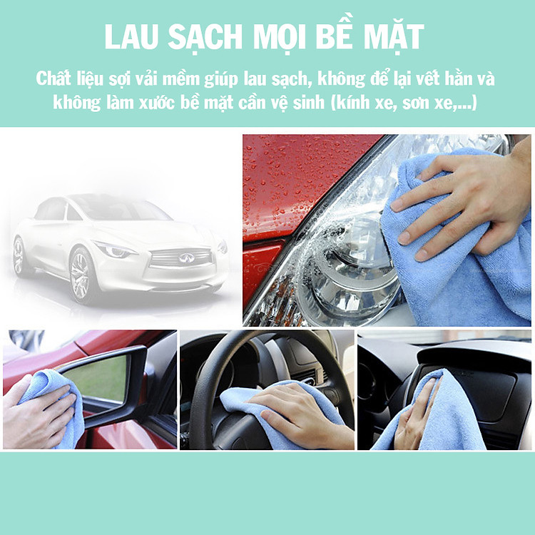 - Sở hữu một khăn lau với khả năng thấm hút tốt, không gây trầy xước bề mặt giúp lau sạch vết bẩn trên xe, hay không gian nhà ở.