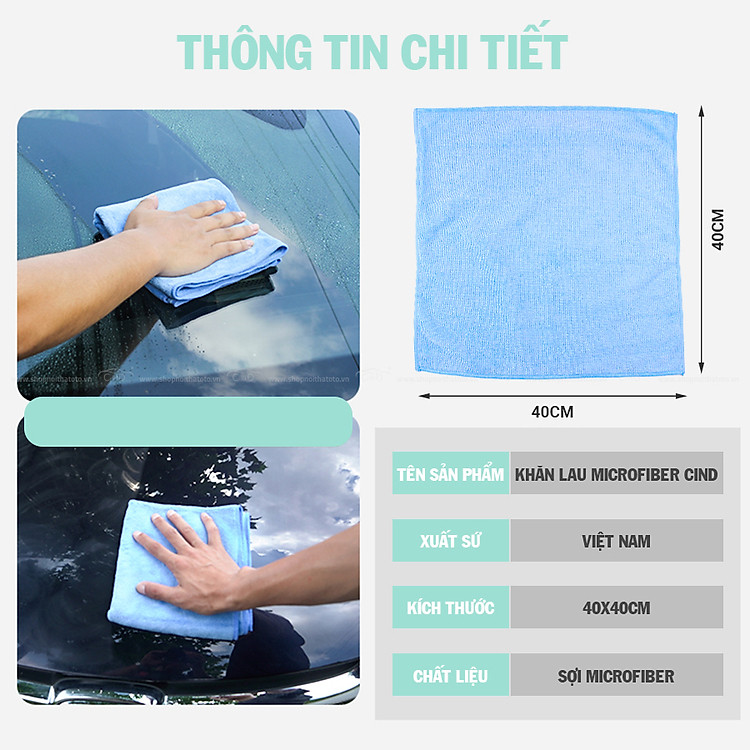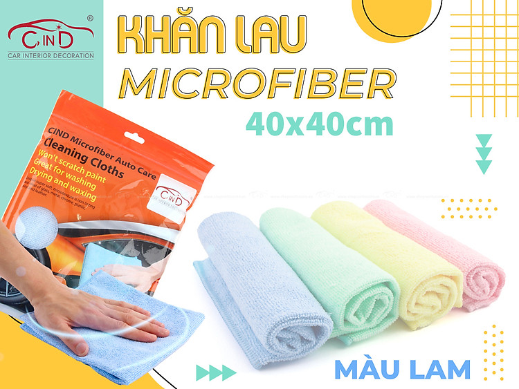 - Khăn lau microfiber CIND màu lá (40*40cm) là sản phẩm khăn lau vệ sinh xe được dệt từ sợi microfiber có kích thước chỉ bằng 1/100 sợi tóc. Với vô số những lỗ nhỏ giúp hút nước rất tốt và khi vắt cũng sẽ khô rất nhanh. Sở hữu đặc tính vô cùng thích hợp dùng để làm khăn lau, khăn Microfiber sẽ giúp lau sạch vết bẩn mà không làm trầy xước bề mặt của các vật dụng trong nhà.